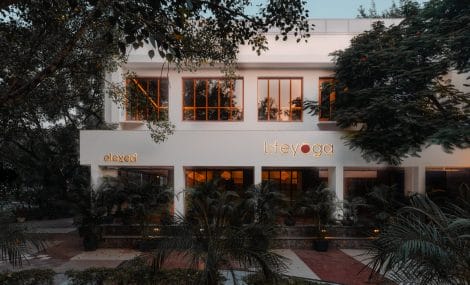 Nestled within the lush greenery of peepal and banyan trees, Lifeyoga seamlessly integrates into the vibrant Malcha Marg market, offering a unique blend of yoga